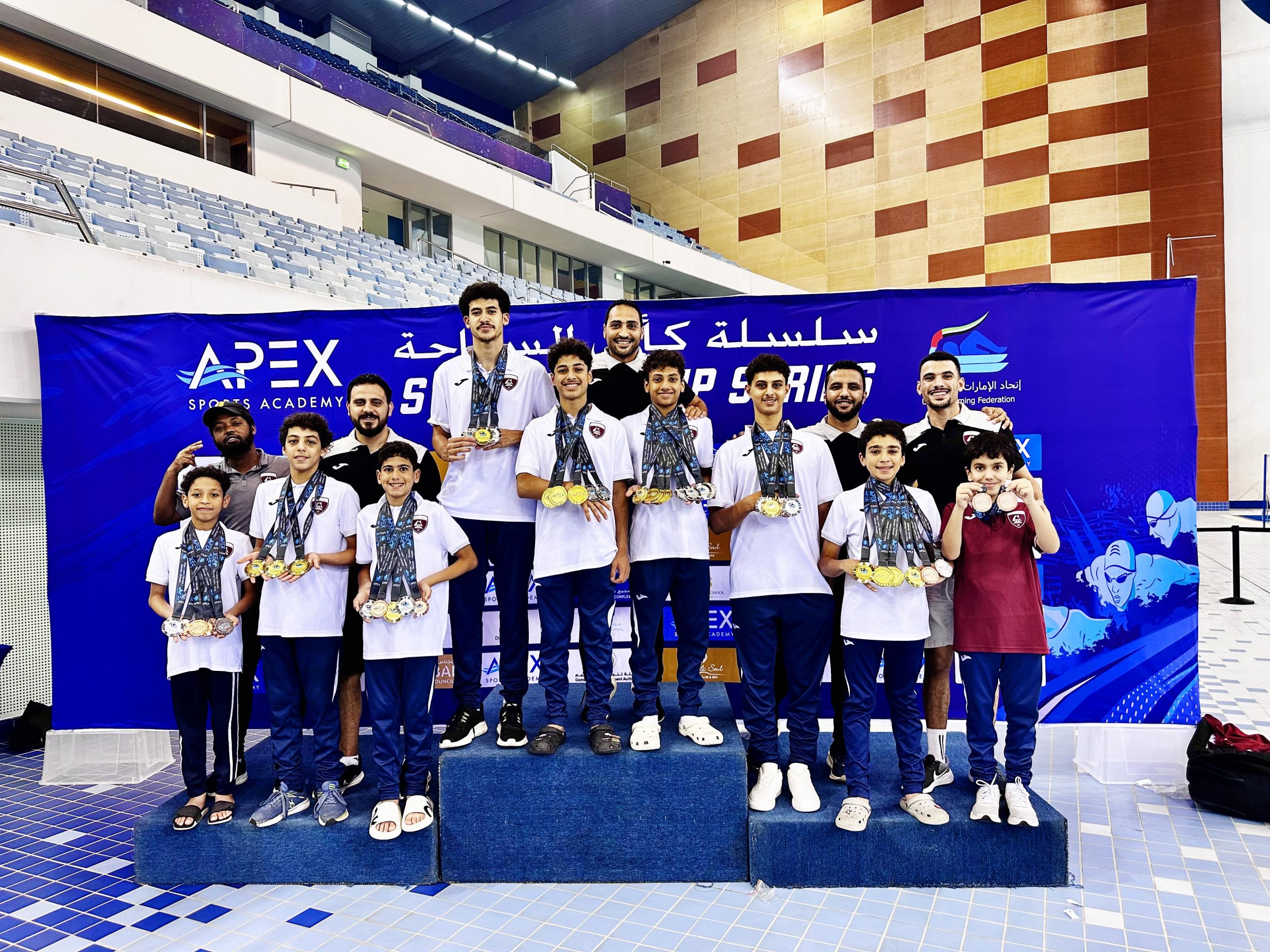 ظفر فريق الحمرية للسباحة بـ43 ميدالية ملونة، ضمن سلسة كأس السباحة، التي احتضنتها مجمع حمدان الرياضي بدبي، في 10 مايو 2025.